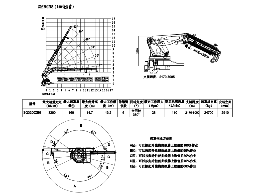 吊機吊機型號SQ3200ZB6折臂